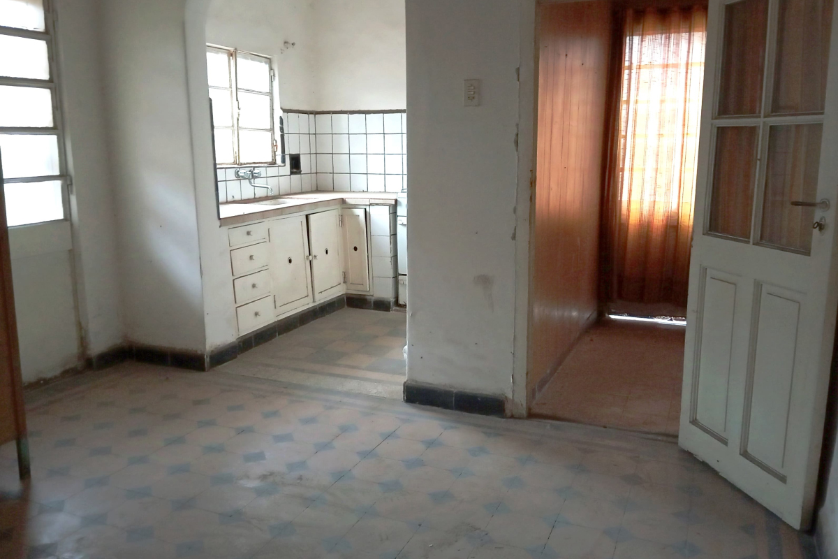 -Cocina con piso en mosaicos, mesada revestida en cerámicos, termotanque