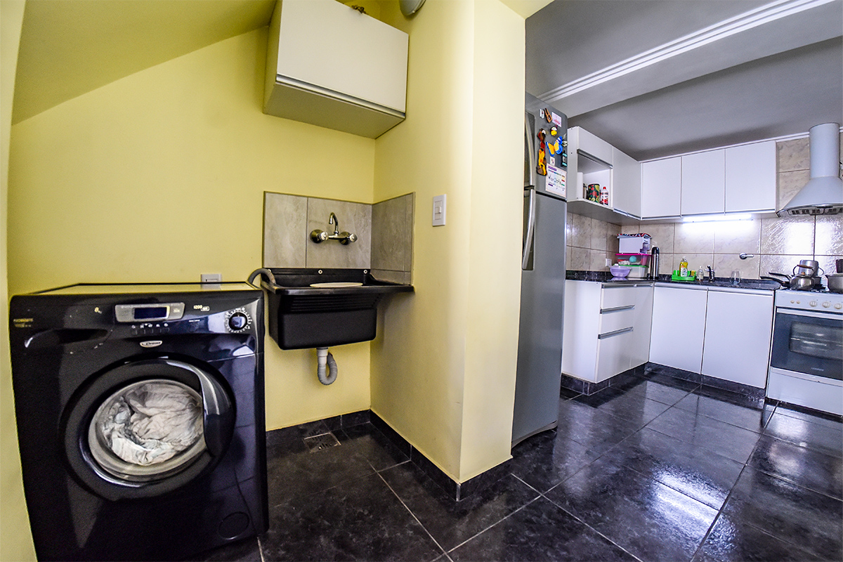 -Cocina con piso en cerámicos, mesada, bajo mesada, alacena, lavadero cubierto,