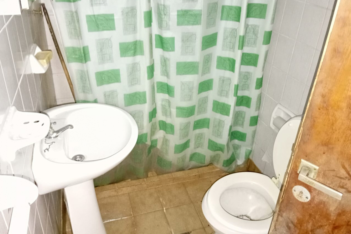 -Baño con piso y paredes revestidos en cerámicos, instalado con calefón eléctrico